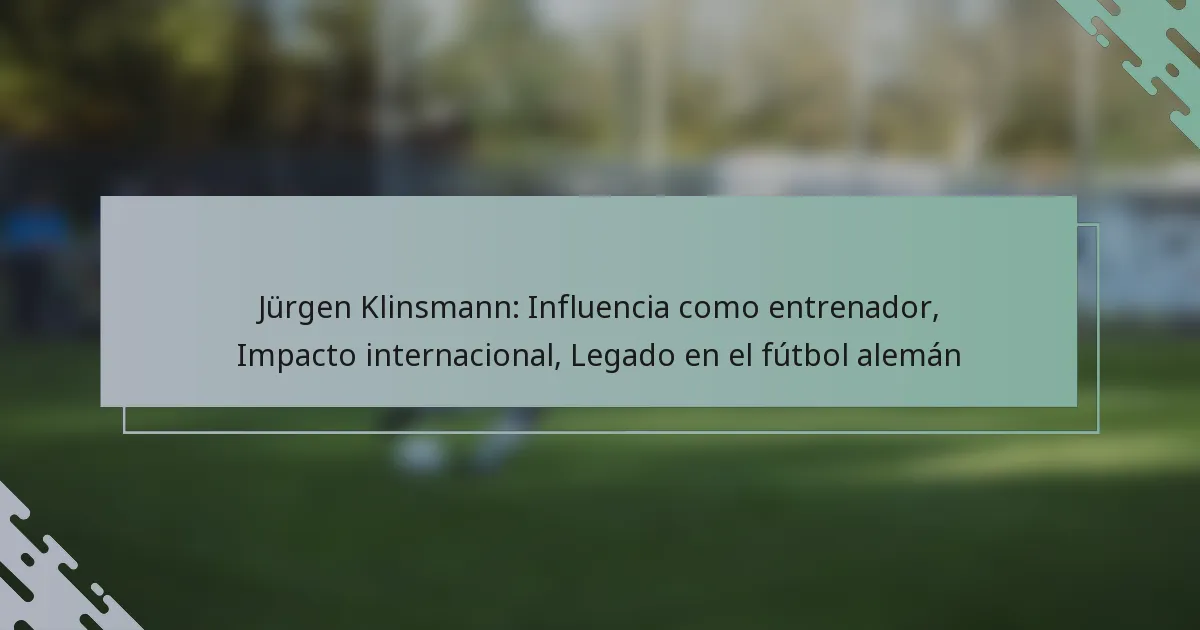 La influencia de Jürgen Klinsmann como entrenador en el fútbol se marca por sus estrategias innovadoras y su énfasis en el desarrollo de jugadores. Su enfoque ha moldeado significativamente las prácticas de entrenamiento modernas, particularmente en el fútbol alemán, donde su legado continúa resonando.